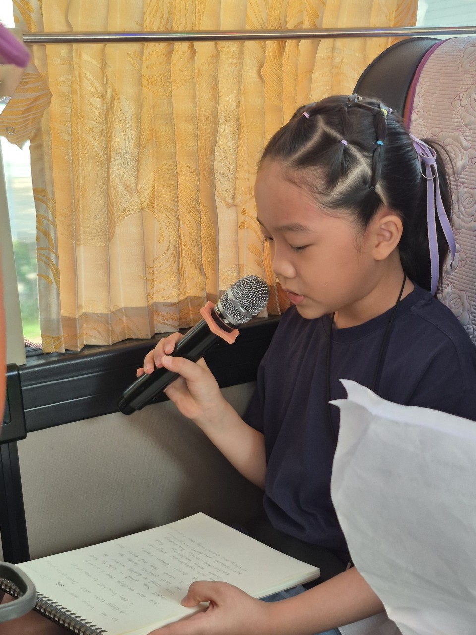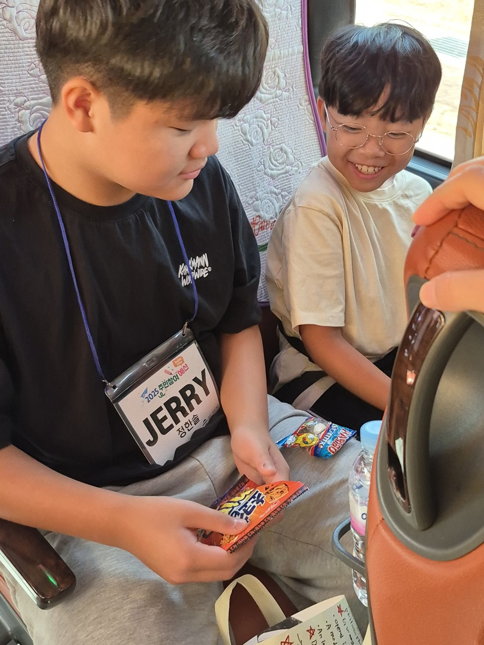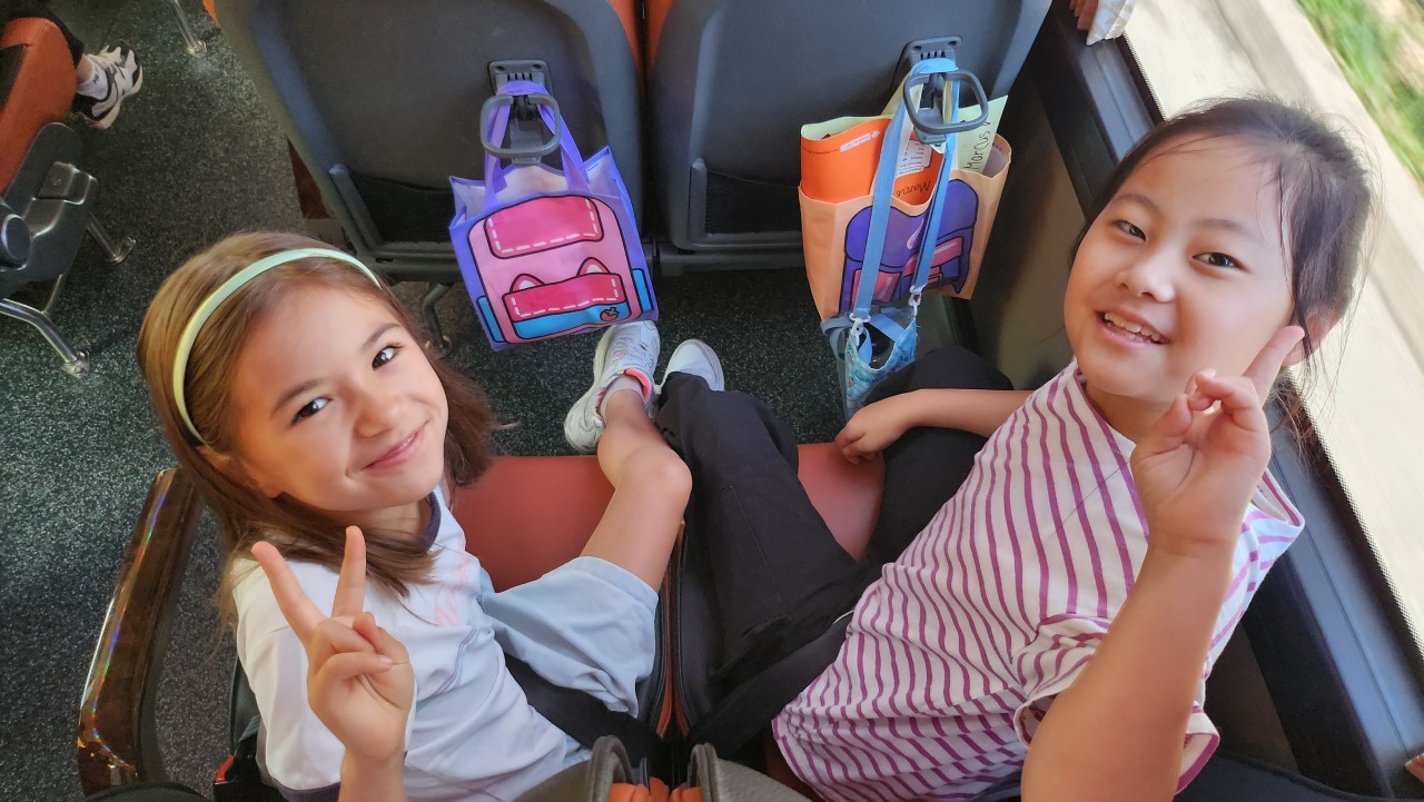 영어캠프에서 친해진 친구와 과자도 먹고 이야기도 하면서 설레는 마음을 가득 안고 출발했습니다