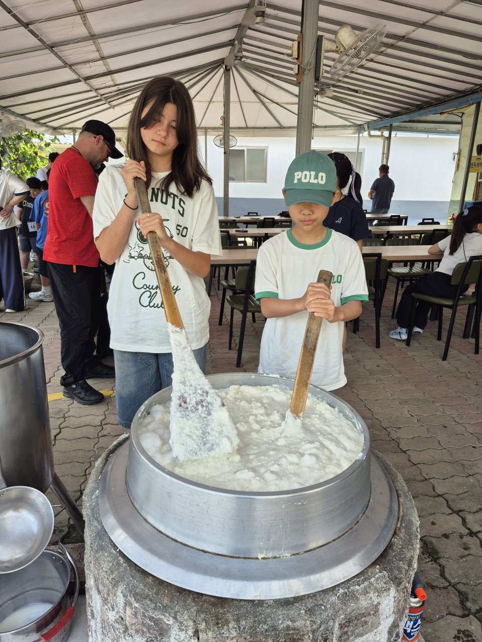 따끈따끈 갓 만들어진 두부여서 "한 접시 더 주세요!~"하고 외치는 친구들이 많았습니다