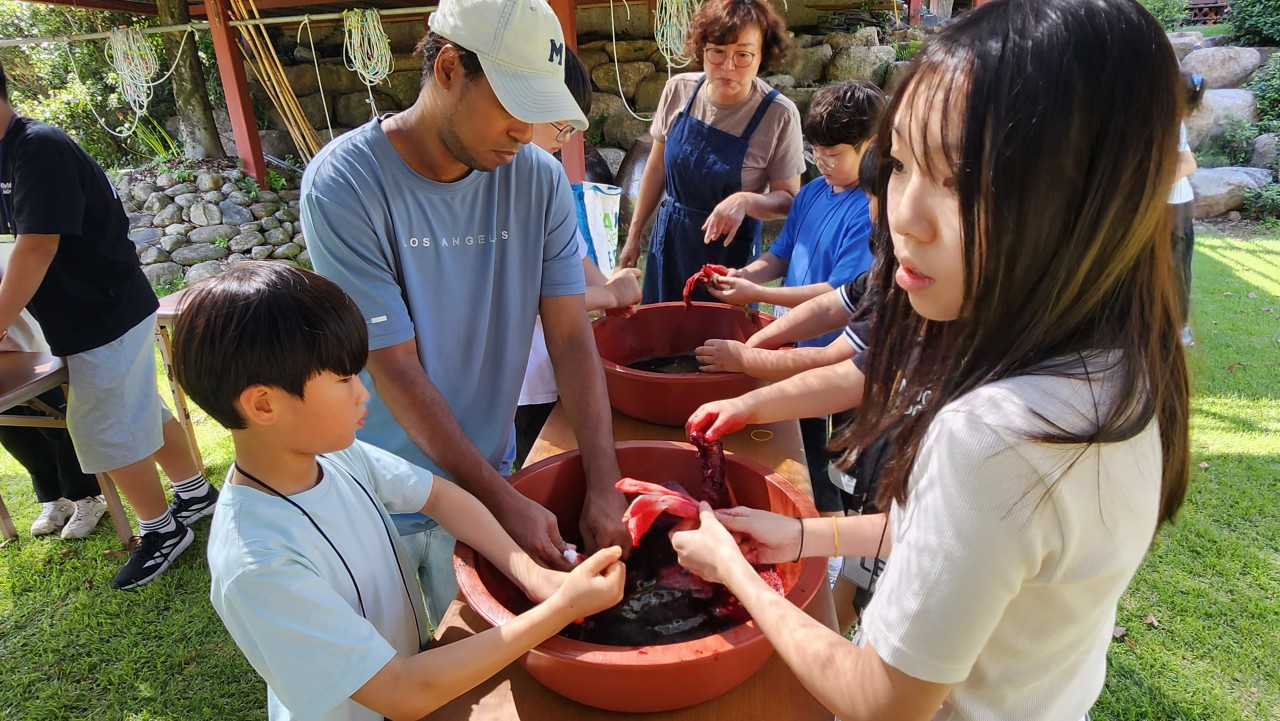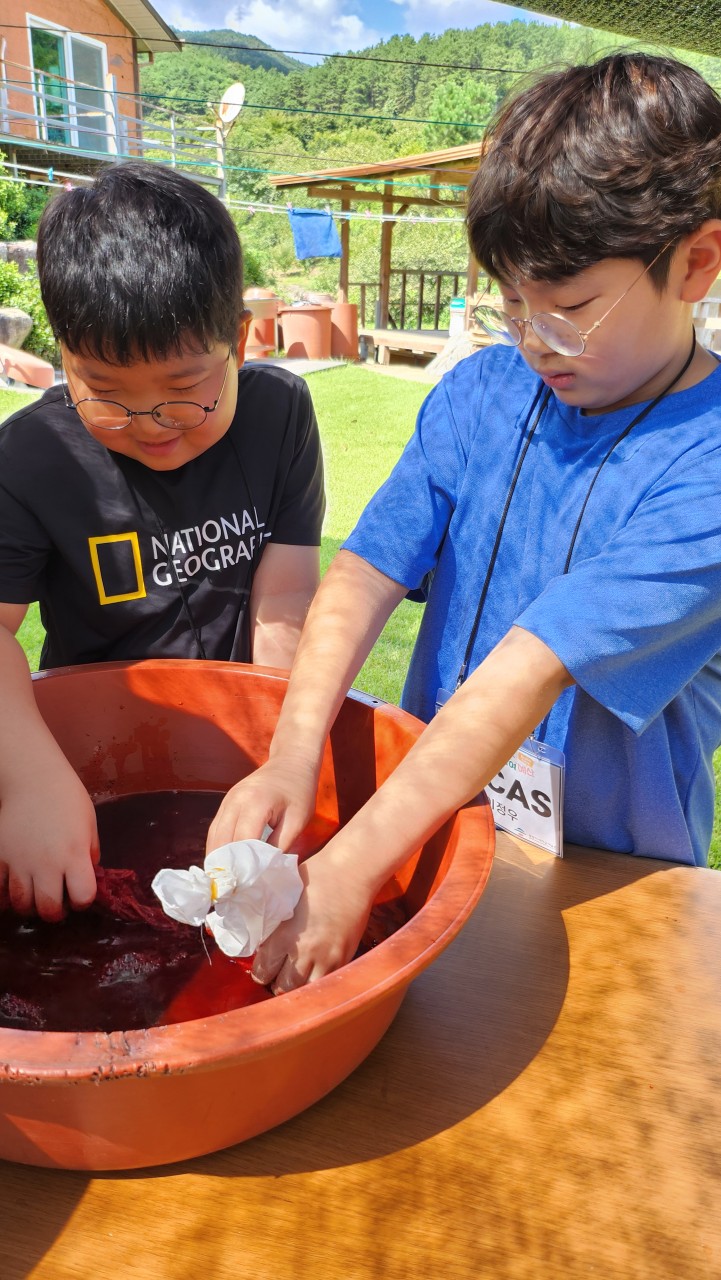 배불리 먹은 다음 코스는 <손수건 천연염색>