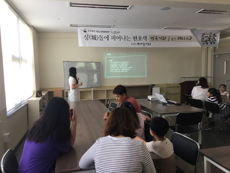 생생문화재 '성(城) 돌 사이에 피어난 현호색 '명문기와의 문양, 제사유구' 에서는 산성에서 출토된 유물을 바탕으로 재현해보는 시간을 갖고자합니다. 명문기와 문양과 제사유구를 만들어보며 산성문화를 알아가는 시간을 가졌습니다.