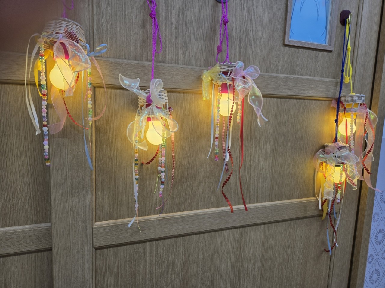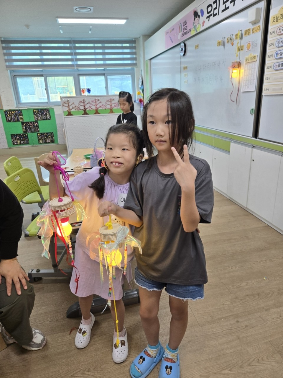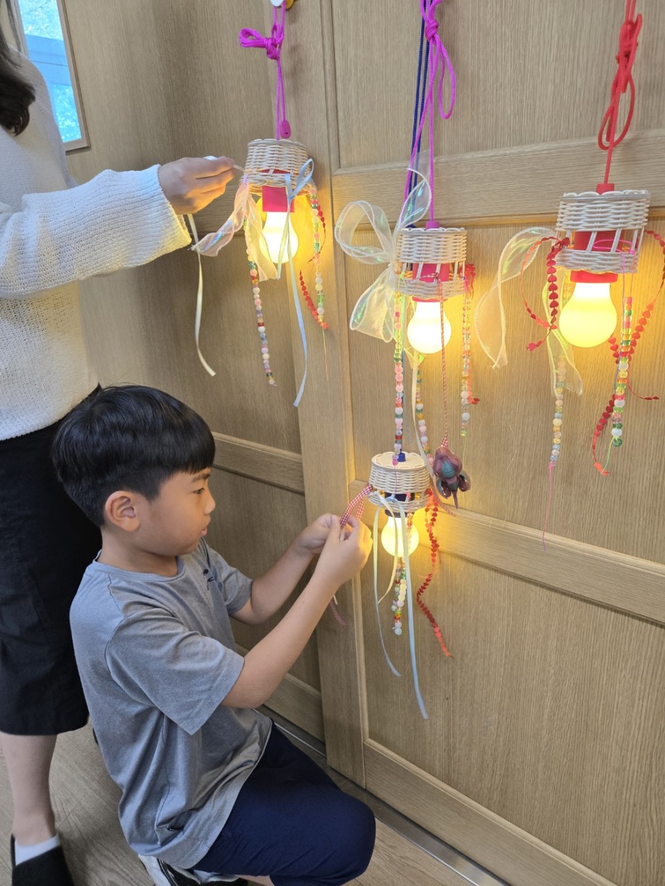 수업 마지막에는 아이들이 만든 조명을 밝히고 녹음기를 사용해 반짝반짝 작은별 노래를 부르고 다시 들어보며 마음을 나눴습니다
