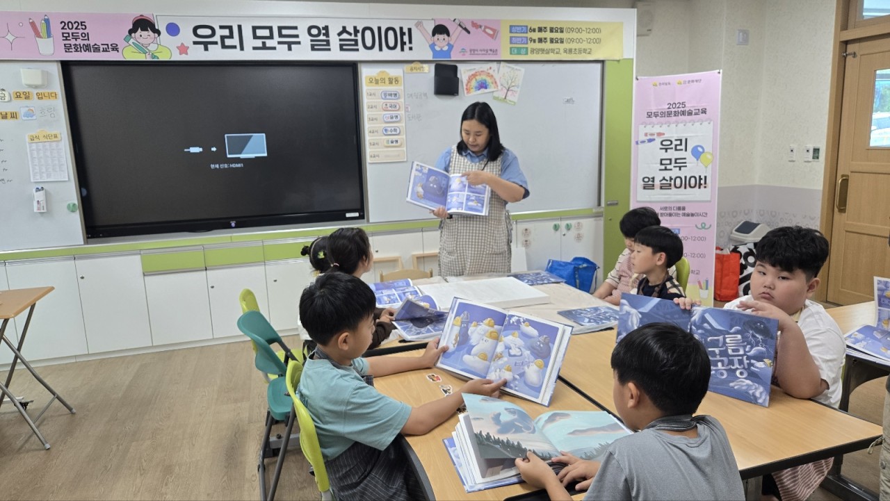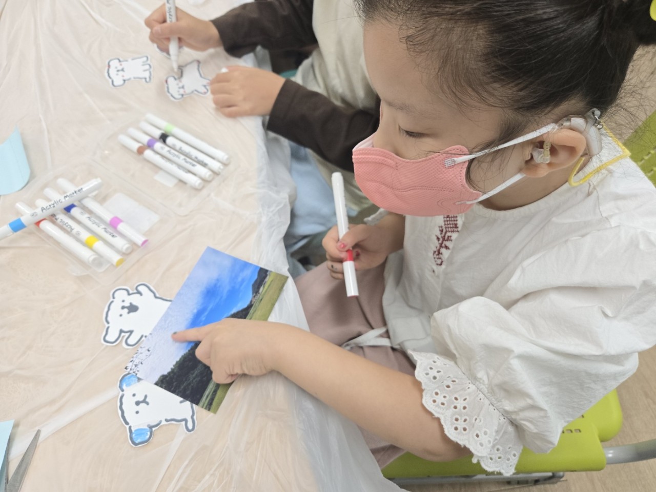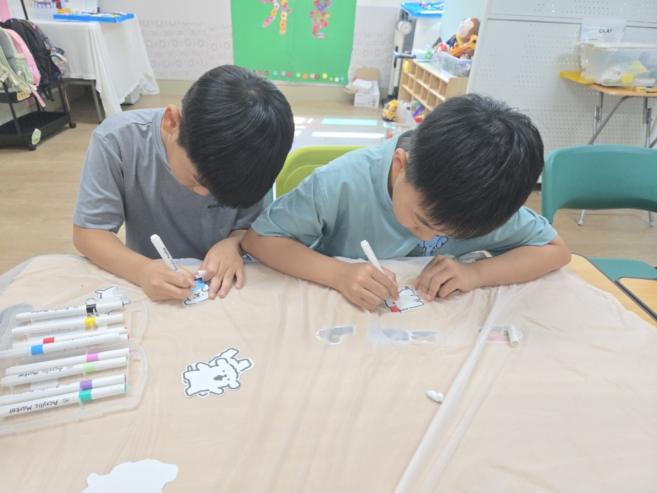 친구들은 놀고 싶은 마음을 뒤로 한 채 교실로 돌아와 '구름이'를 그리고 색칠해봅니다