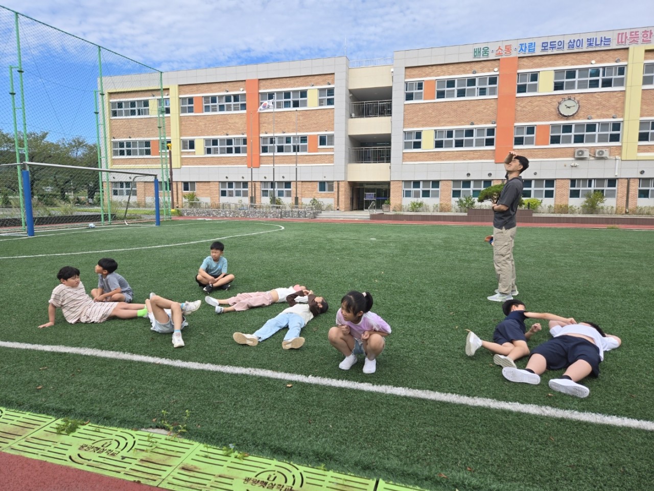 하늘을 머금은 액자는 잠시 햇살에 맡겨두고 우리는 운동장으로 나갔어요