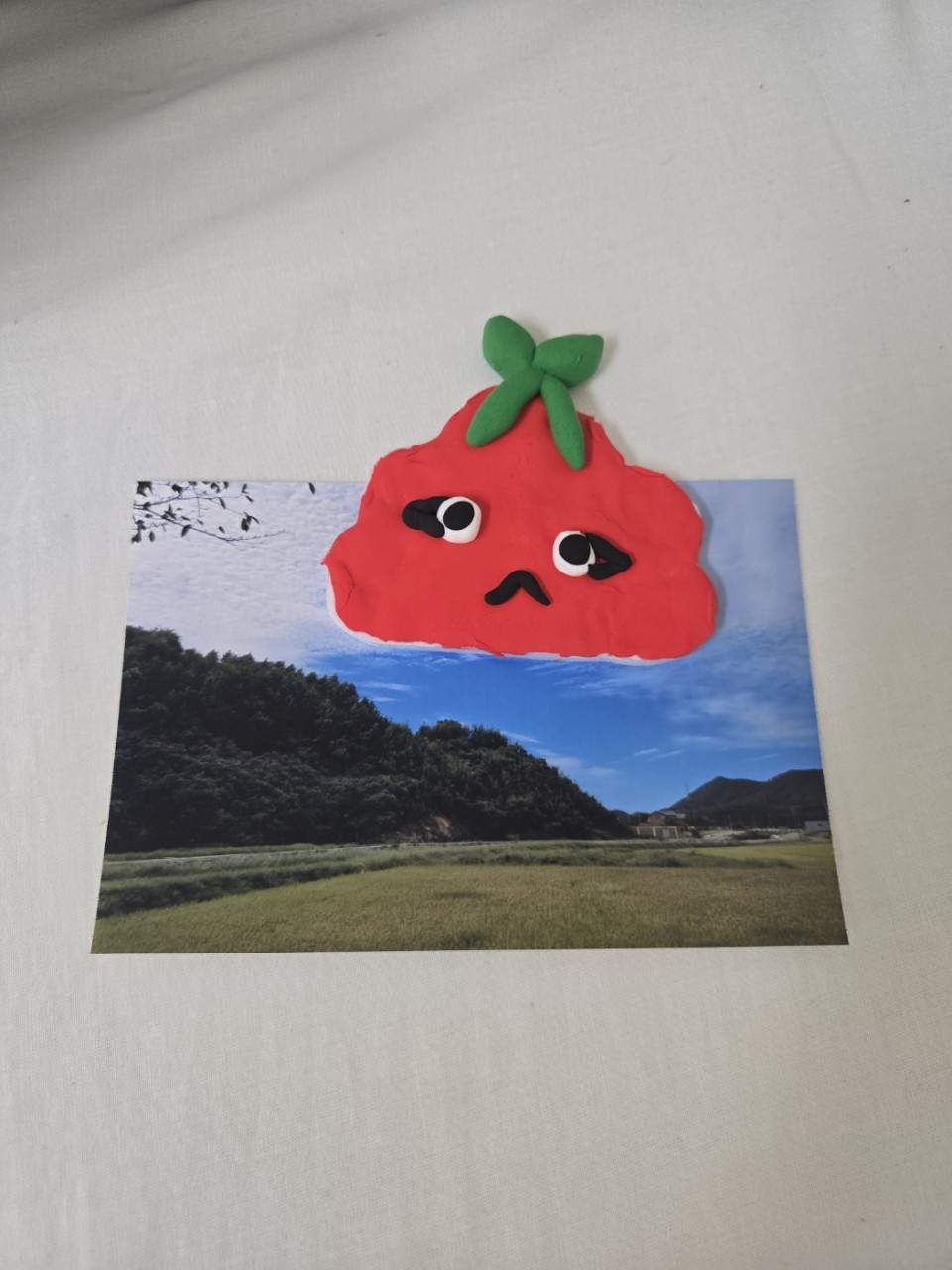 하늘 빛으로 물들인 액자에 우리가 만든 구름을 붙여줍니다