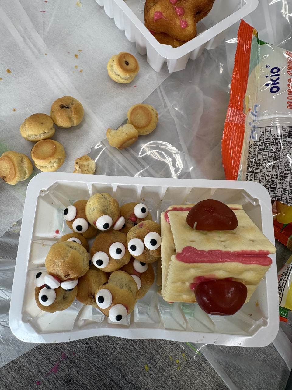 초코펜으로 다양하게 과자들을 꾸미며 다양한 의성어와 의태어를 발견했어요