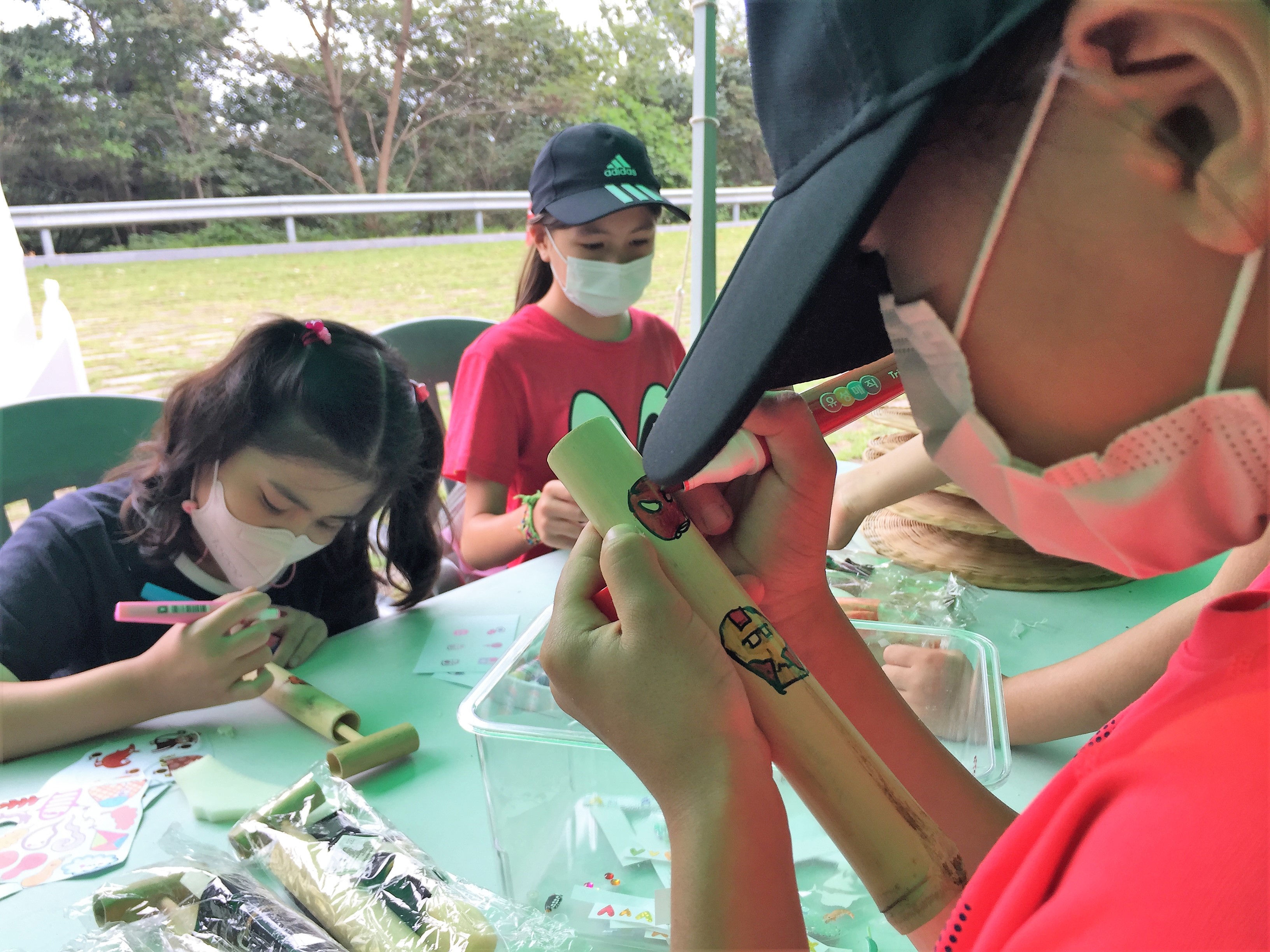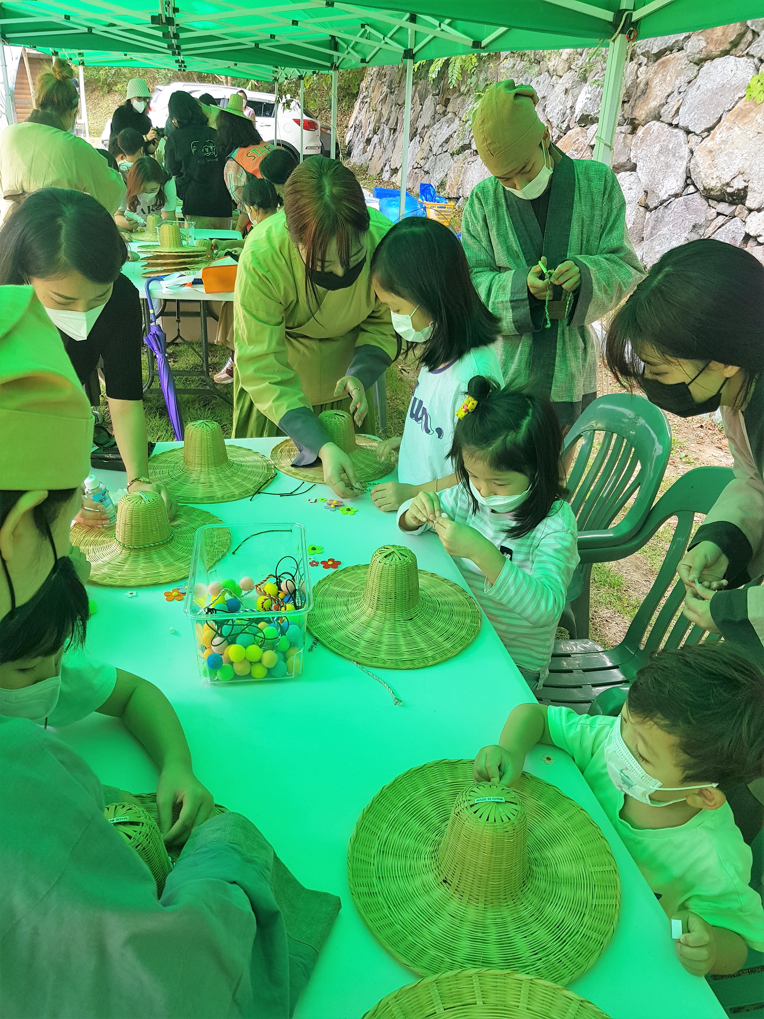 아이들이 집중력을 발휘해 주었던 패랭이 모자 꾸미기와 대나무 물총 만들기 체험 현장 입니다.