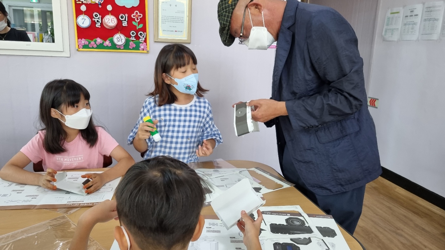옛날 사진기 만들어보기 체험과 내가 가장 좋아하는 사진 인쇄해 이야기해보는 수업을 진행했습니다. !!